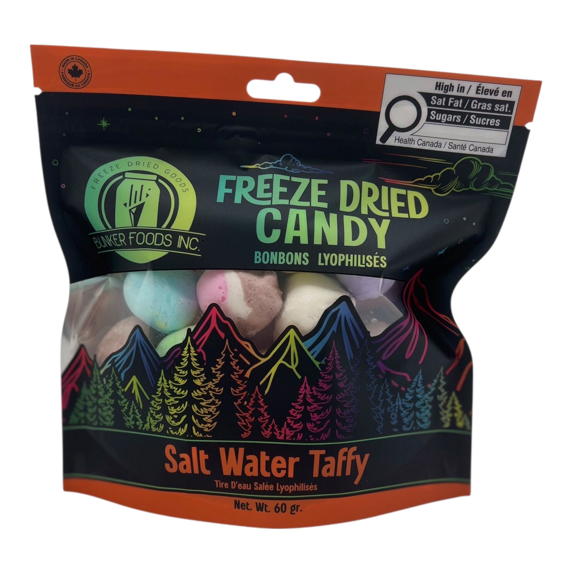 Freeze drying salt water taffy makes this chewy taffy easier on the teeth! The texture becomes similar to a freeze dried marshmallow and the flavour is enhanced.