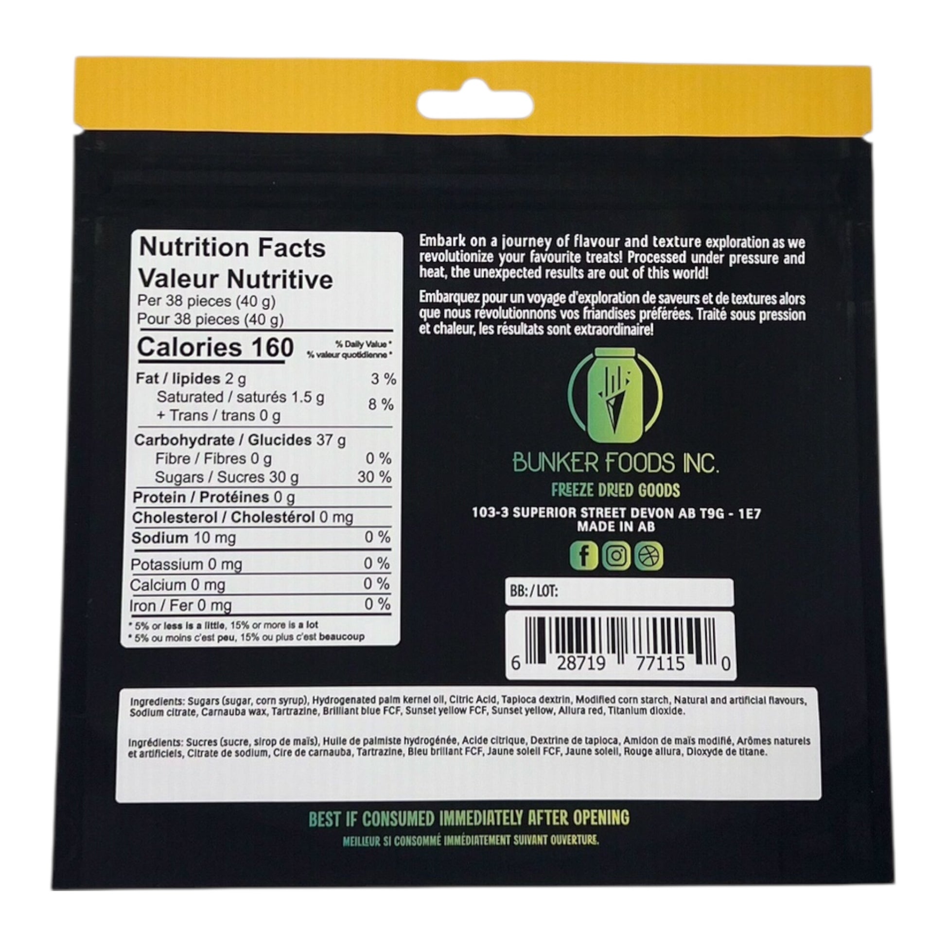 Freeze drying takes this from a chewy candy to a crispy and crunchy, fruit explosion!